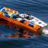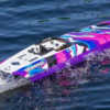 MODÈLE 57046-4 : Catamaran Prêt-À-Naviguer entièrement assemblé, système radio TQi 2,4 GHz, gestion de la stabilité Traxxas, moteur brushless Velineon 540XL, ESC marin VXL-6s et graphiques appliqués en