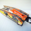 Coque de Catamaran moulée dans un solide plastique ABS, décorée et vernie à l’usine dans une nouvelle décoration orange et noire avec tête squelette.