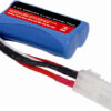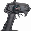 Sont incluses également une batterie Li-Ion 7,4 Volts 800 mA pour la propulsion du moteur, une pile 9 Volts pour l’émetteur, une radiocommande proportionnelle à volant en 2,4 GHz.
